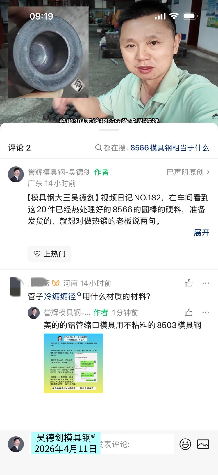 转载请注明:模具钢_模具钢材_h13模具钢_模具钢价格 - 模具钢大王吴德剑 » 网友留言问,管子冷缩缩径用什么材质的材料?