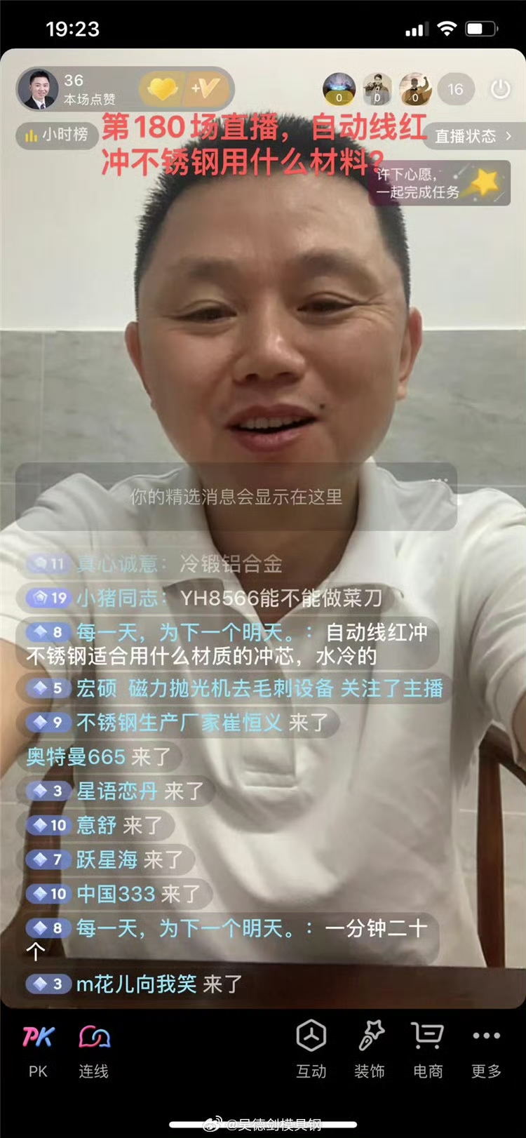转载请注明:模具钢_模具钢材_h13模具钢_模具钢价格 - 模具钢大王吴德剑 » 昨晚直播间有网友提问:自动线红冲不锈钢适合用什么材质的冲芯?