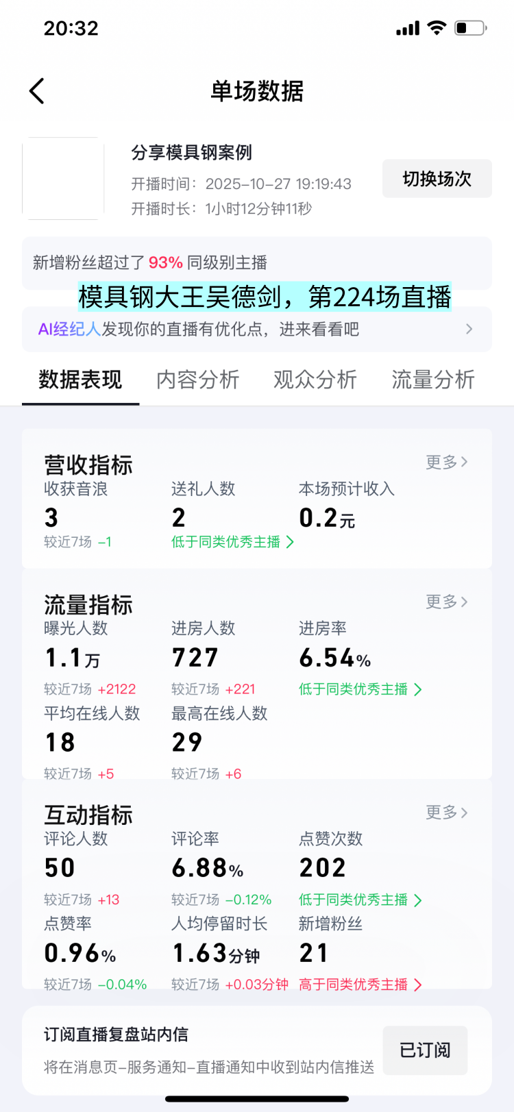 2025年10月27日,我做了1小时的直播,这是我第224场直播。