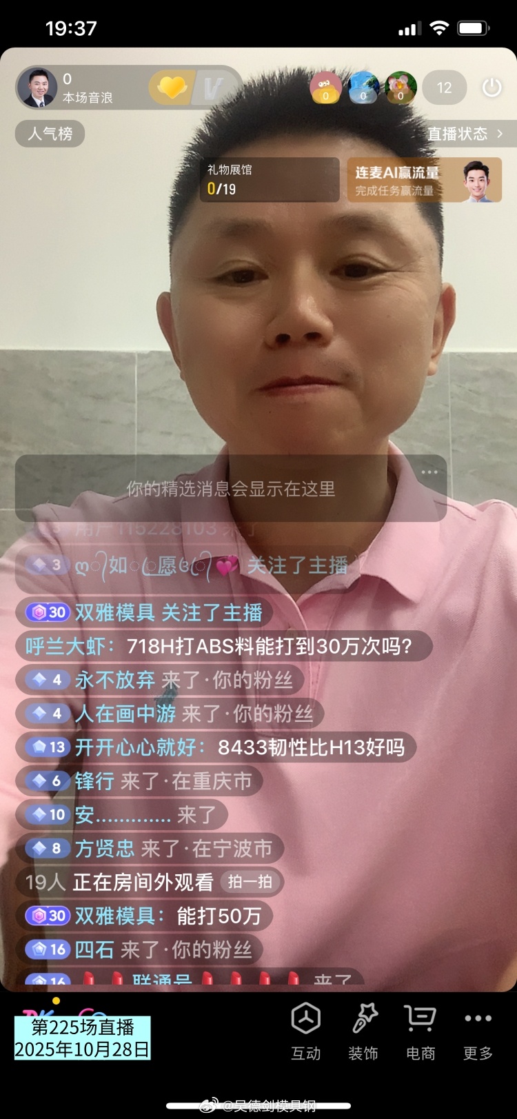 直播间网友提问,718H打ABS料能打到30万次吗?能打50万吗?