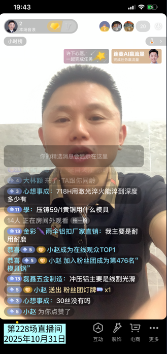 转载请注明:模具钢_模具钢材_h13模具钢_模具钢价格 - 模具钢大王吴德剑 » 第228场直播间网友问,压铸59/1黄铜用什么模具钢?