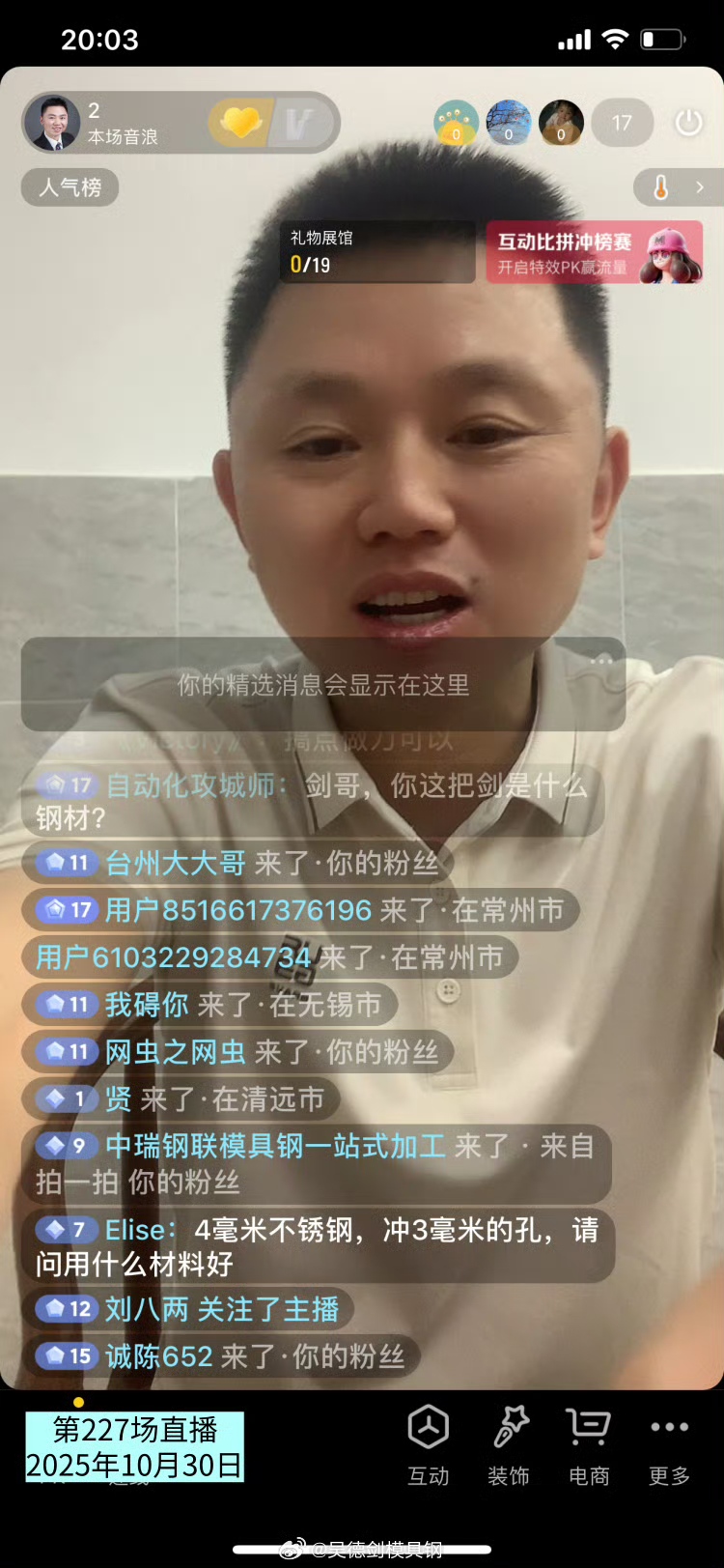 第227场直播间网友问:4毫米不锈钢,冲3毫米的孔,请问用什么材料好?