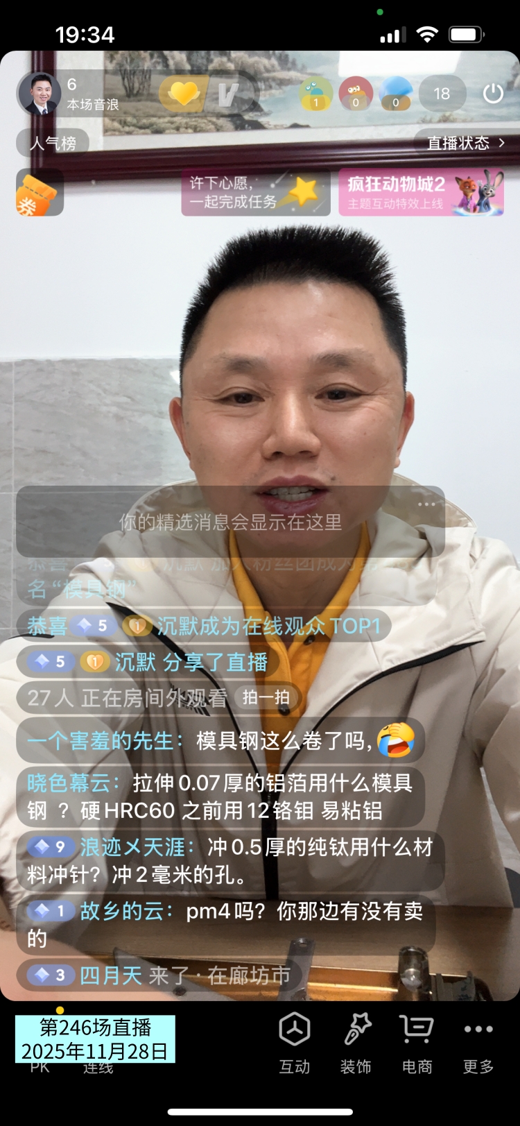 言外之意,模具钢已经卷到需要开直播卖货了吗?有点看不起直播的意思。