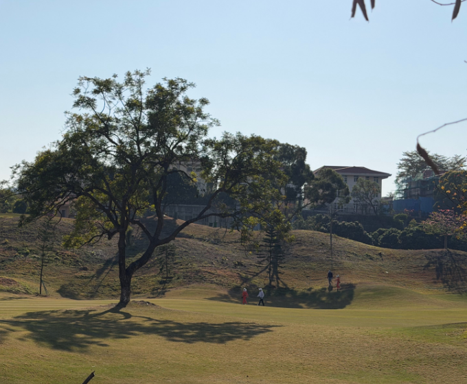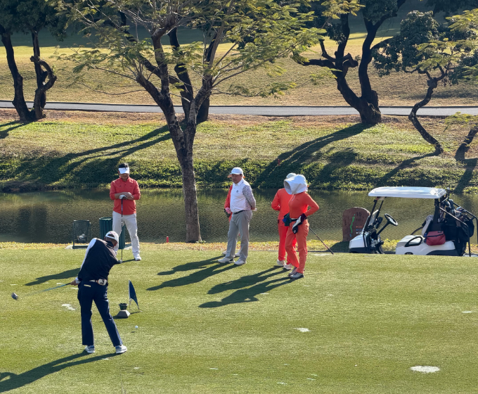 有钱人的游戏,不仅草坪修剪得很漂亮,还有一群人陪着。