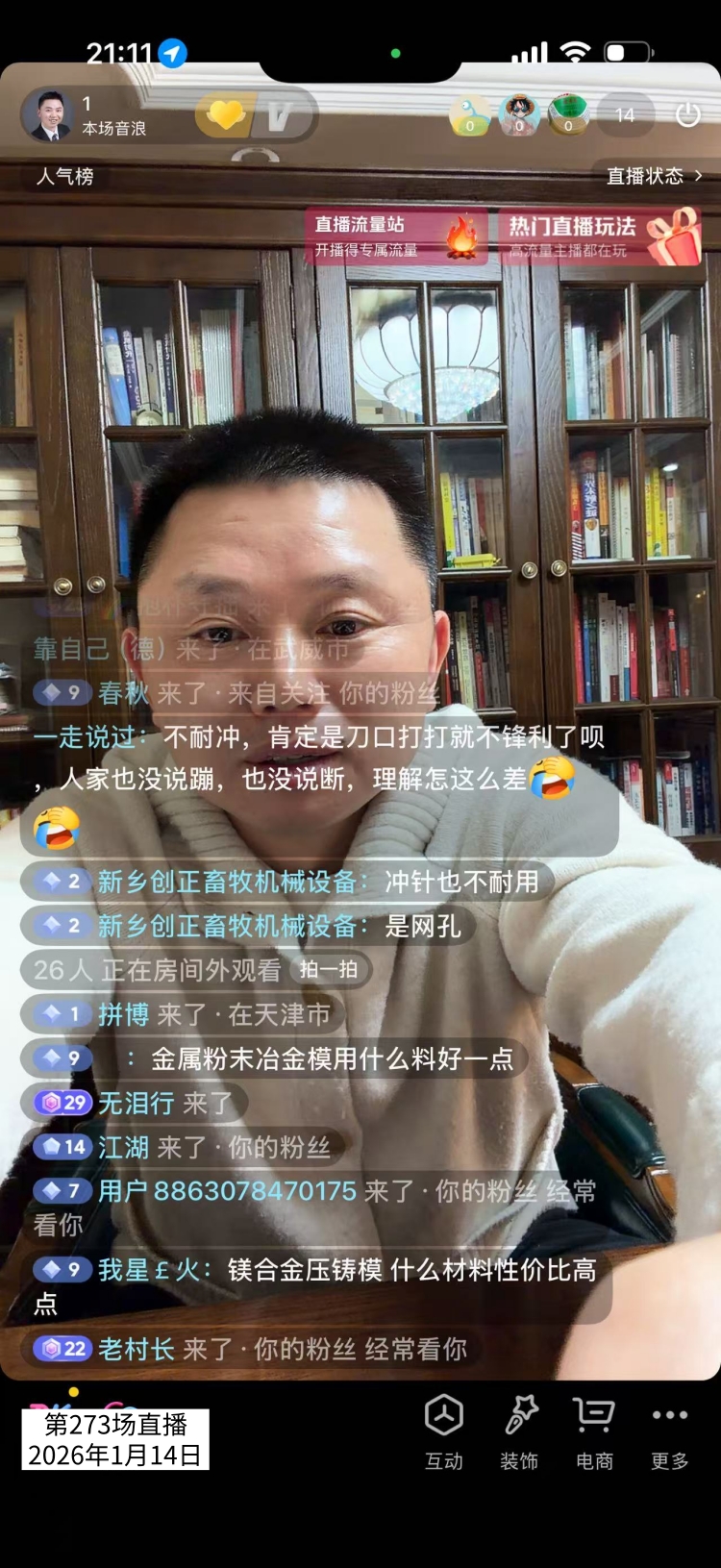 第273场直播间有网友提问:金属粉末冶金模用什么料好一点?