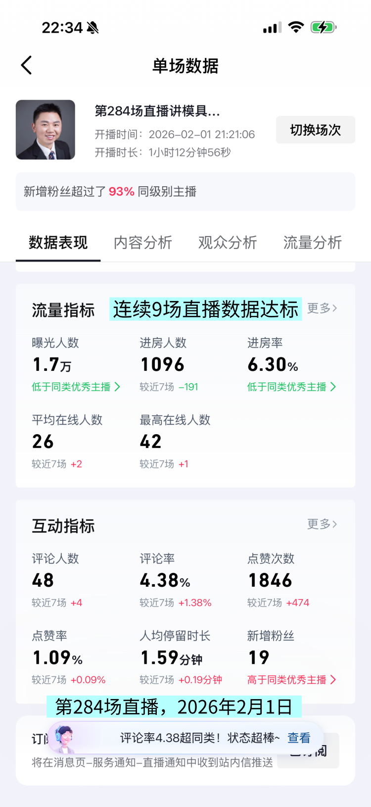 而且连续9场直播数据达标,数据不会骗人的,再加上各种反馈,所以我有这种预感。