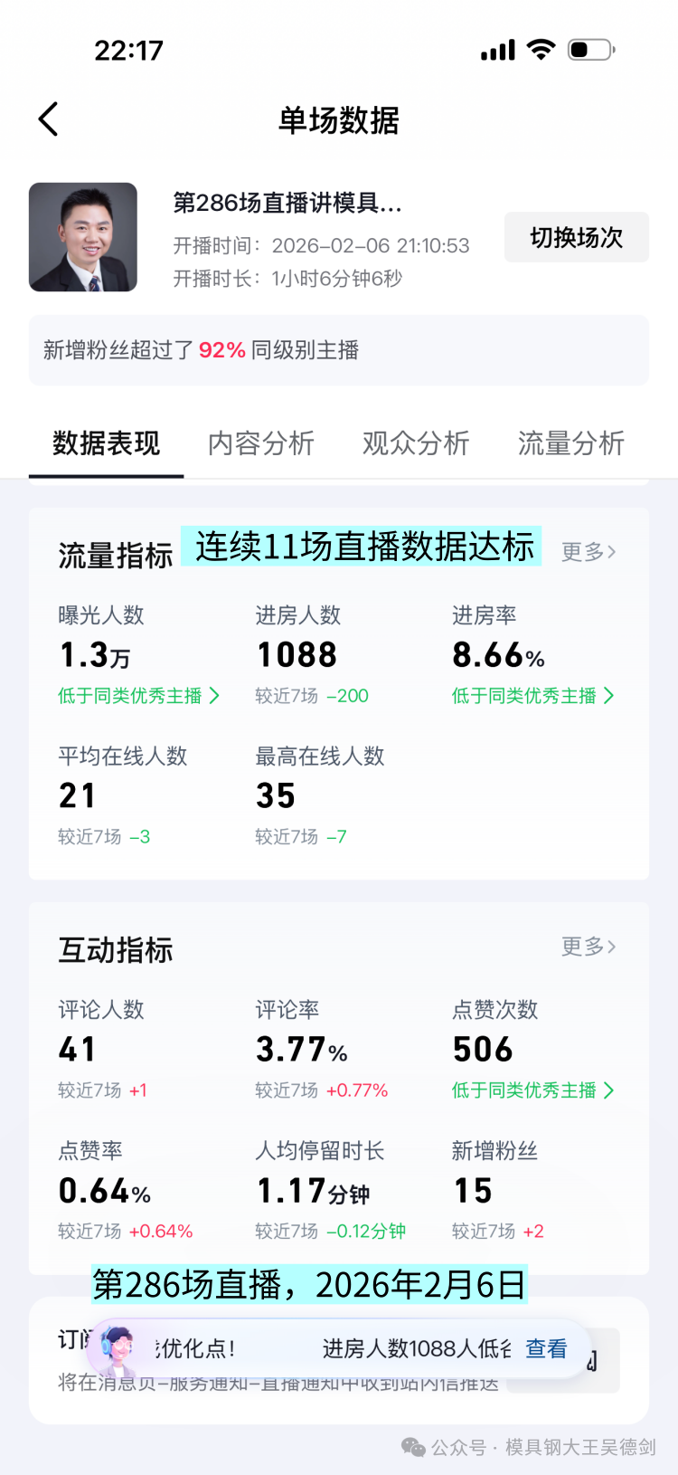2026年2月6日的星期五晚上,我做了1小时直播,这是我的第286场直播。