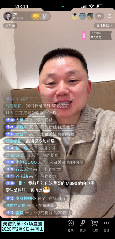第287场直播间网友点评说,我前几年你这里买的M390做的电子零件塑料模,真抗造!