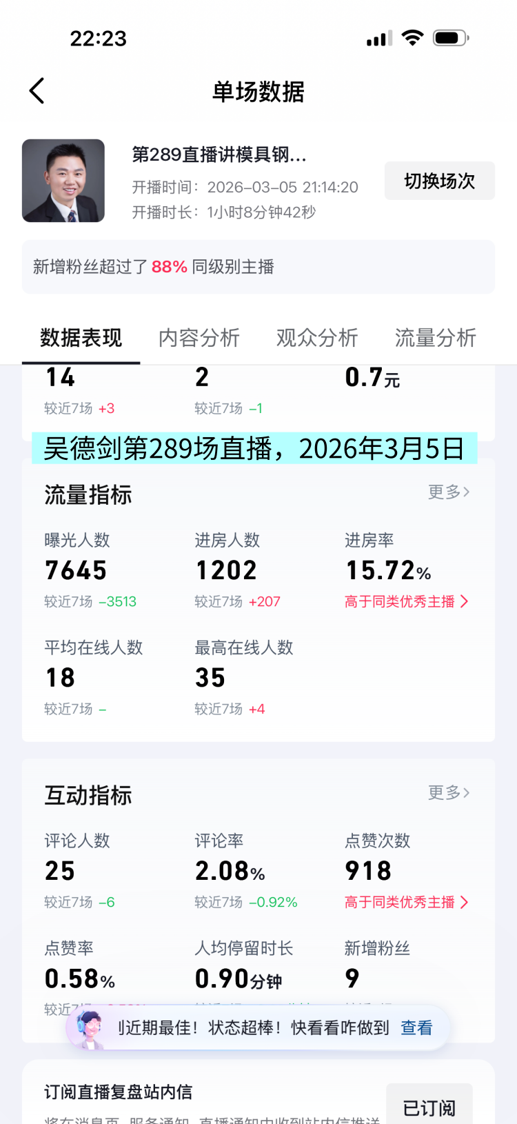 转载请注明:模具钢_模具钢材_h13模具钢_模具钢价格 - 模具钢大王吴德剑 » 第289场直播:这场直播数据较上一场有所提高,好现象